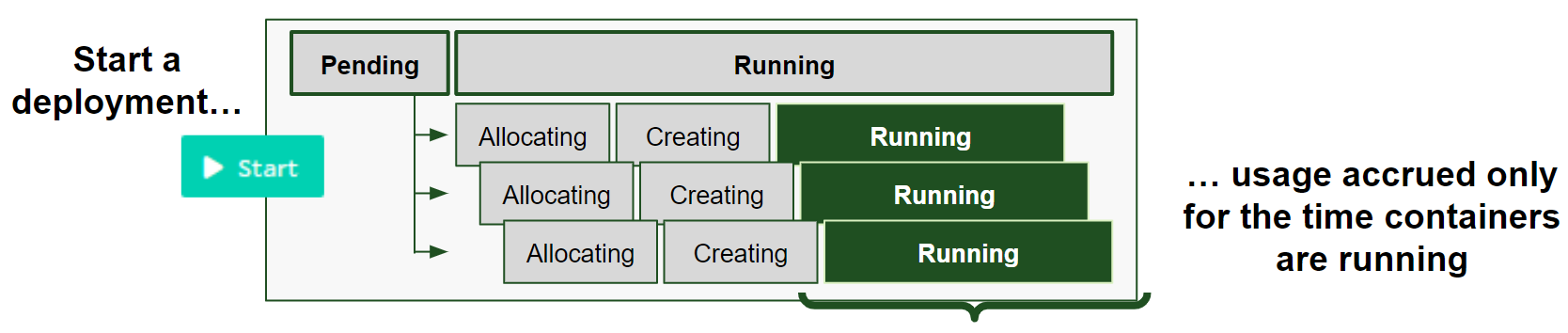 SaladCloud bills for the time that the selected hardware resources are dedicated to your application, although it is common to see hourly rates listed on Salad, usage is tracked per second.🎉 Never Pay for Cold Boot Time Again You only pay for the time that the hardware is available to used by your application, you will never pay for Cold Boot time.