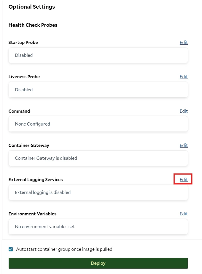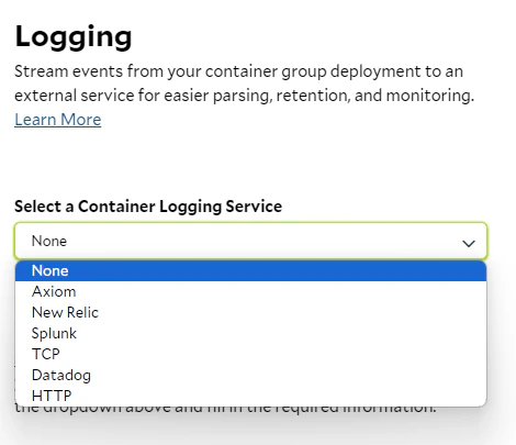 📘 Don’t have an external logging provider? Check out the Container Logs feature in the SaladCloud Portal.