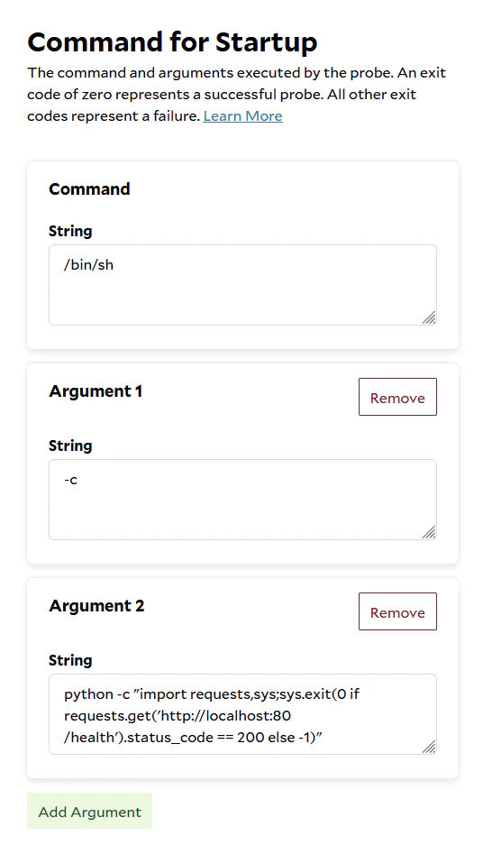 container is considered in a healthy state. Any other exit codes indicate the container is not ready yet.