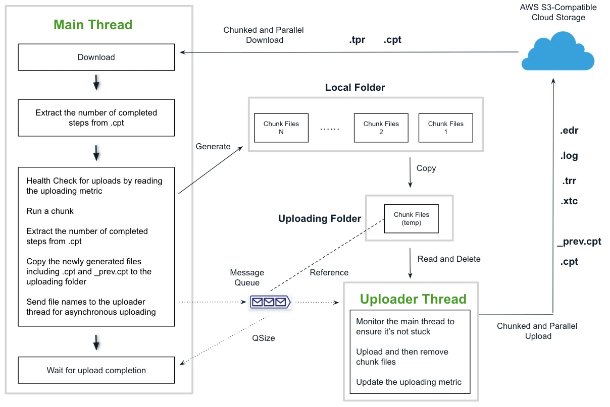 - Introduce a dedicated uploader thread with task queue to offload upload operations from the main thread, ensuring that simulation execution remains unblocked.