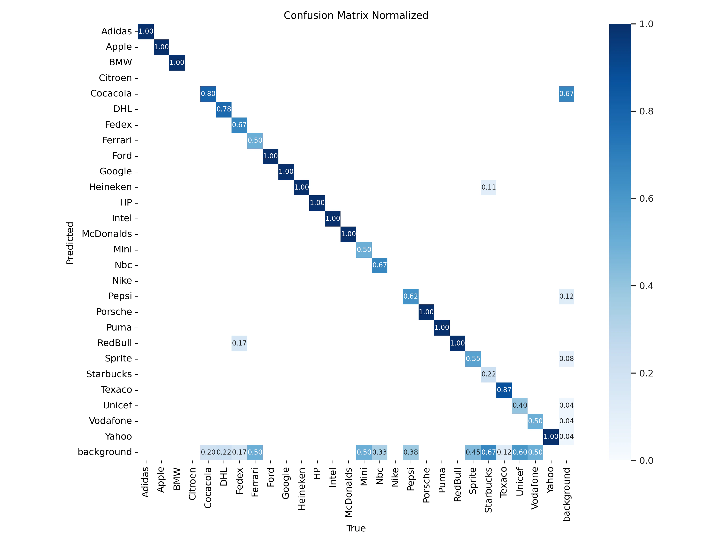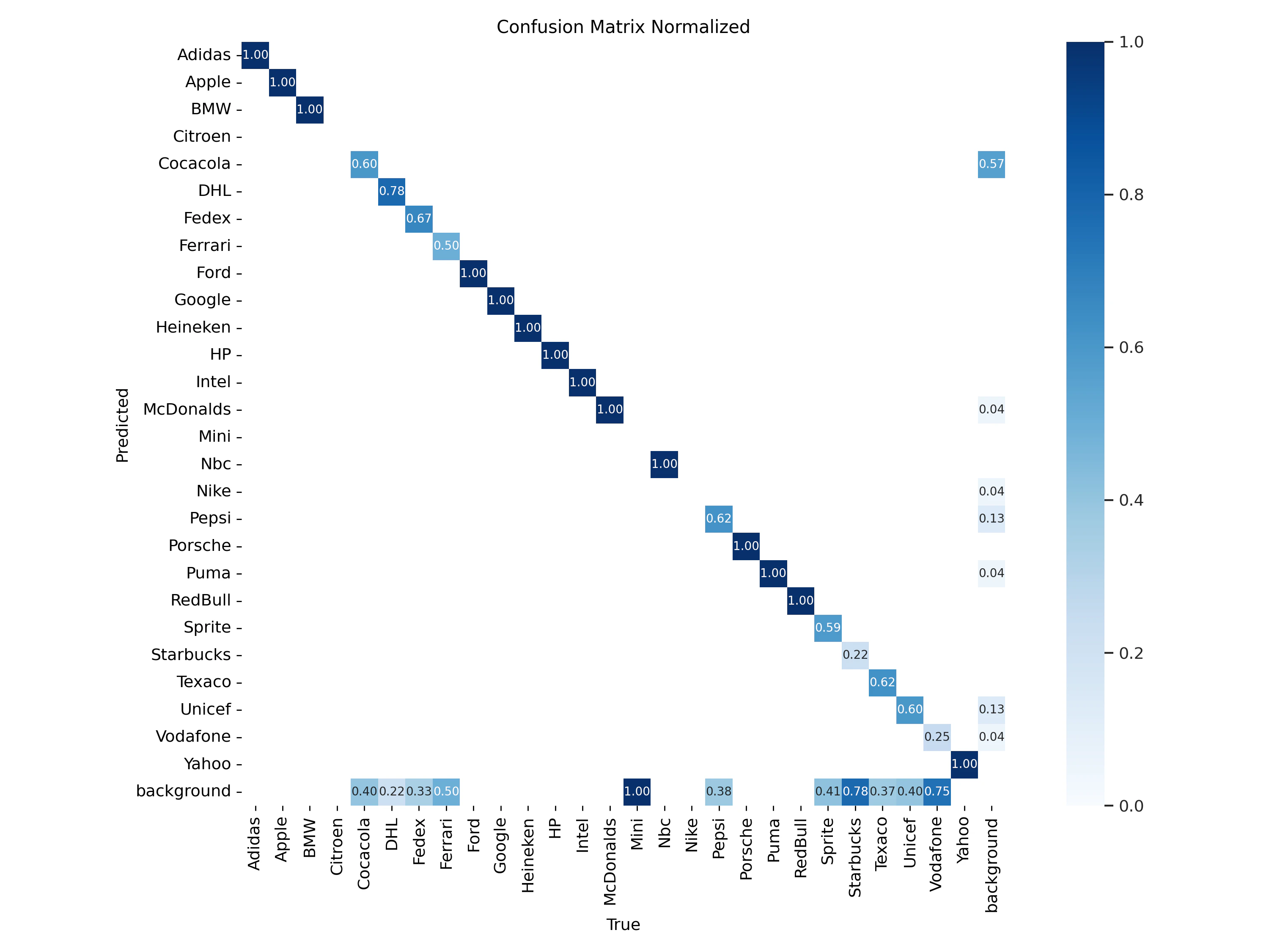 The first model in our comparative study is the YOLOv8 Nano, renowned for its compact yet powerful architecture. With 3.2 million parameters, it is the smallest model in the YOLOv8 family, yet capable of real-time performance, even on CPU-based systems. Duration of Training: Training session for the YOLOv8 Nano model was completed in just about 10 minutes. Which gets us to about 5 cents for training a model. Training results: once our model is trained we can find all the weight along with training and validation results in our Azure storage. We will first check the confusion matrix: