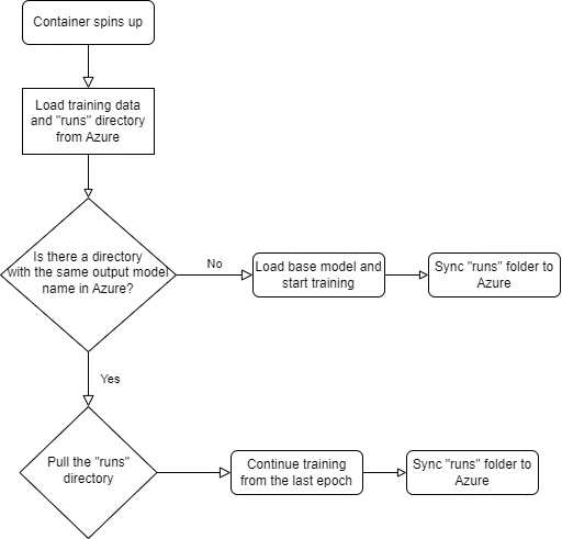 runsfolder from the container to Azure File Share, maintaining a backup and allowing for process continuity. - Monitoring Training Completion: