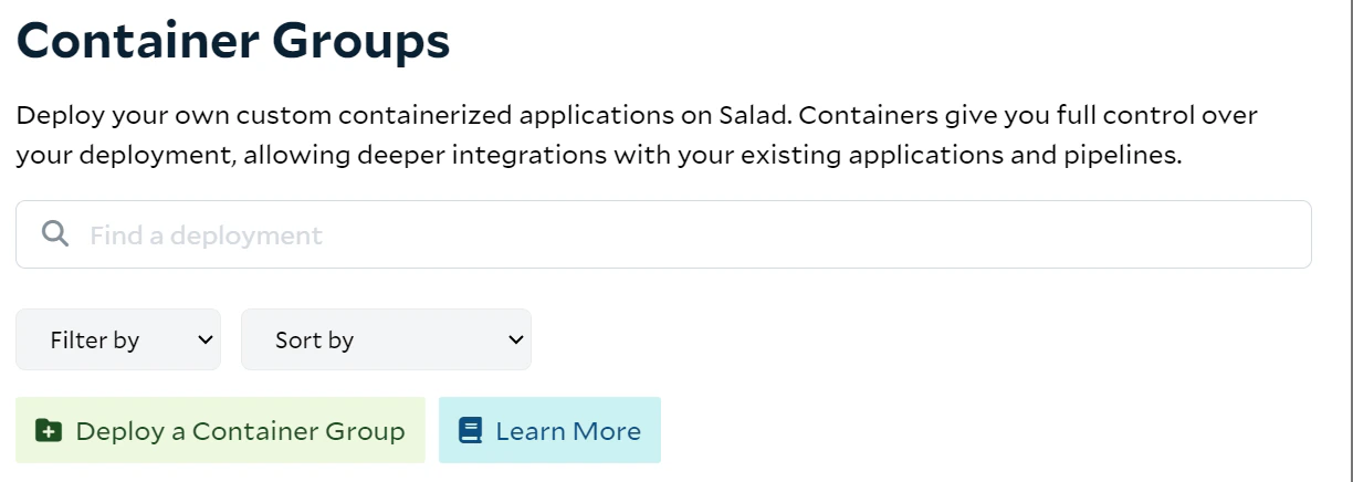 - Under container groups click “Deploy a Container Group“:
