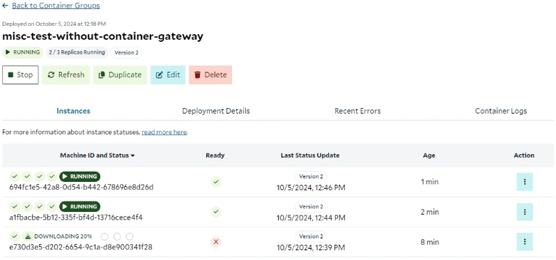 - Deploying a container group with a few instances may reduce waiting time and enhance the developer experience without incurring additional costs.